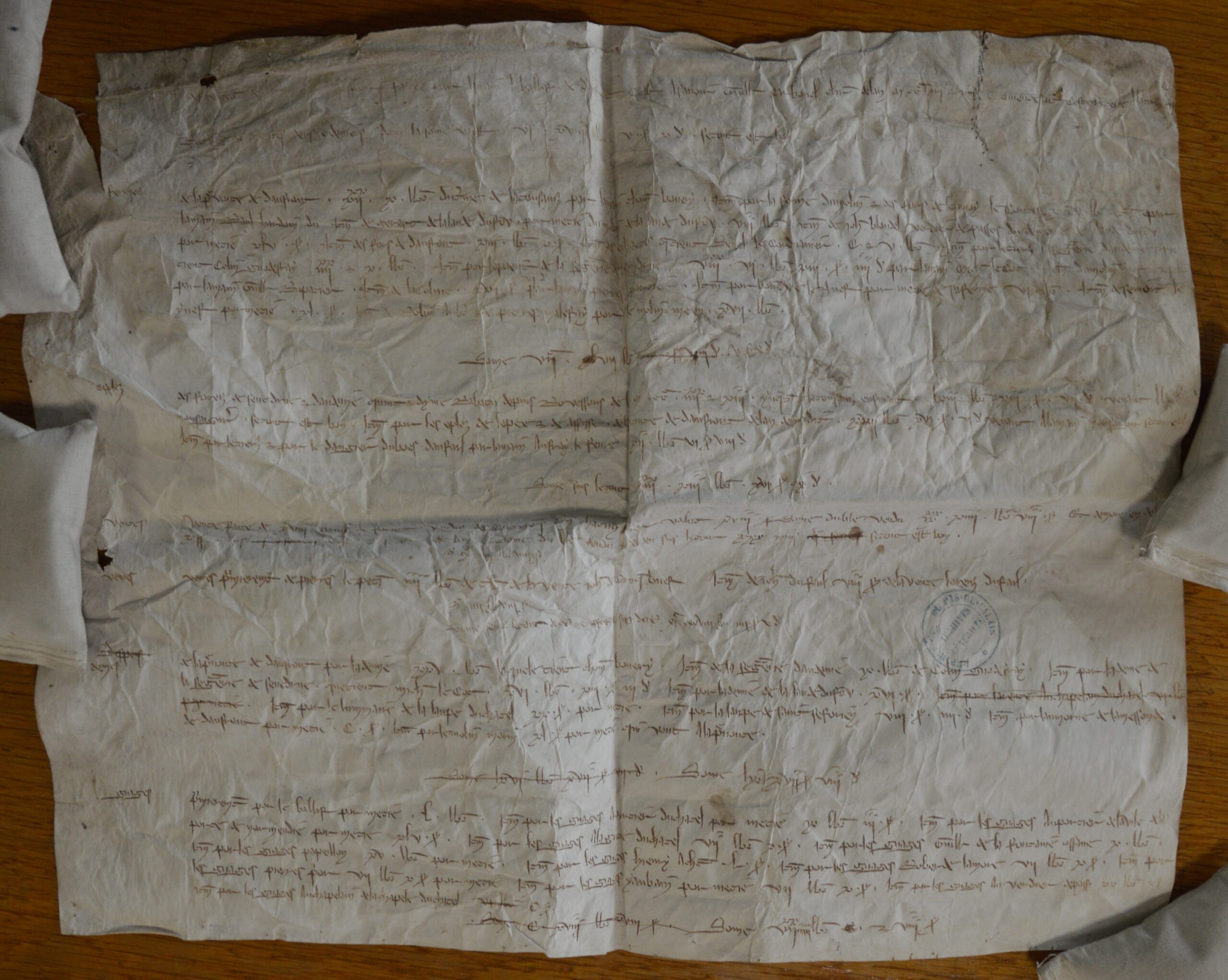 Guillaume Carbonnel est entré en fonction en 1292. Il rend son premier compte à la Toussaint 1292 (AD PdC A 1012-5). Il n’en reste que la 2e peau (dépenses). Le parchemin est à peu près illisible, nous ne mettons pas d’image en ligne. Édition et commentaire du chapitre des “mises” (dépenses diverses, dont les travaux) dans Le Domfrontais médiéval 26, p.69-75.